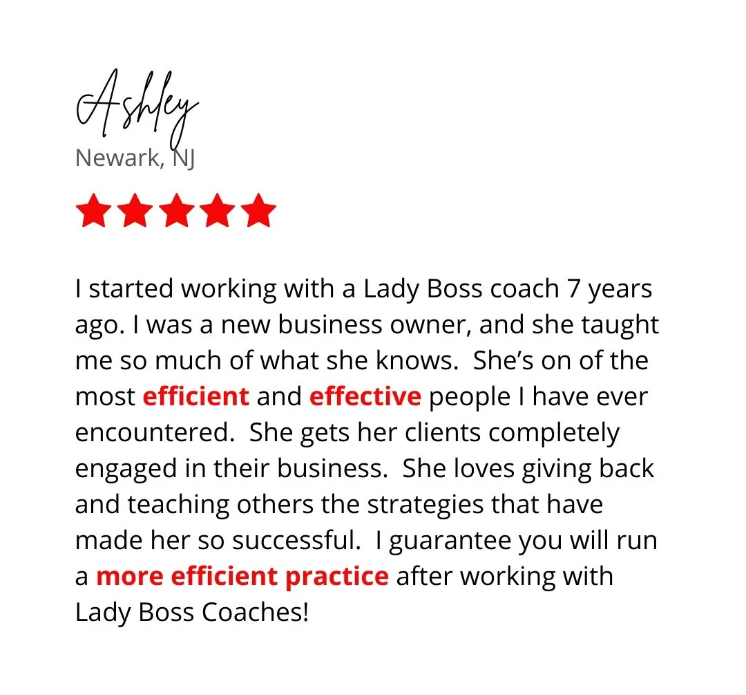 WOW! These reviews are phenomenal! Thank you, Lady Bosses. Your feedback matters to us! If you’ve worked with Lady Boss Coaches, tell us how we did.